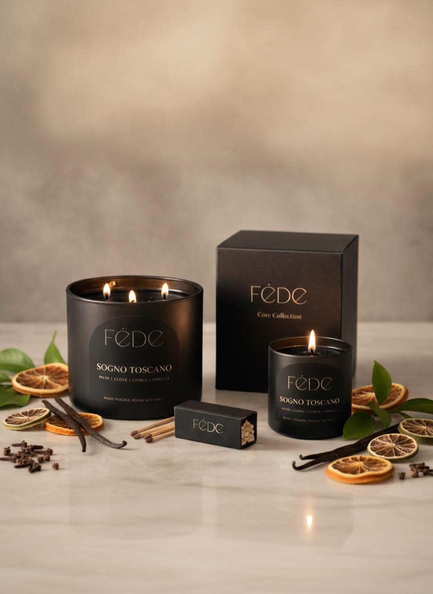 Sogno Toscano blends warmth and depth with subtle sweetness, evoking sun-washed villas, aged stone, and evenings filled with quiet conversation. Soft citrus brightens the opening, layered with clove and grounded by smooth musk and vanilla.